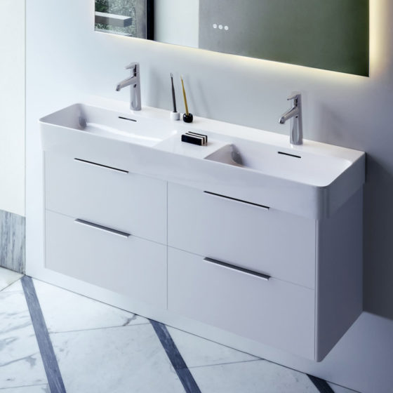 Sokoldalú elemválasztékkal rendelkezik : mosdó alatti szekrények, magasszekrények, középmagas szekrények, alumínium fogantyús vagy rejtett fogantyús kialakítással. Kombinálható az alábbi mosdókkal : Ino, ProS, Val.