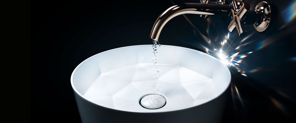 Az Octagon kollekciót precíz forma, vékony falak, a mosdó belső felületén megjelenő tökéletesen csiszolt kristályszerű szögletei adják, melynek létrehozását egy speciális anyag a TitanCeram kifejlesztése tette lehetővé és egyedülállóvá. A csillogó ékszert, a mosdót a hengeres tartó oszlop egyedi anyagú kivitelezése emeli magasságokba : sötét gesztenye fafurnér, meleg tónusú kávé színű bőrborítás vagy a modern pala hatású felület.